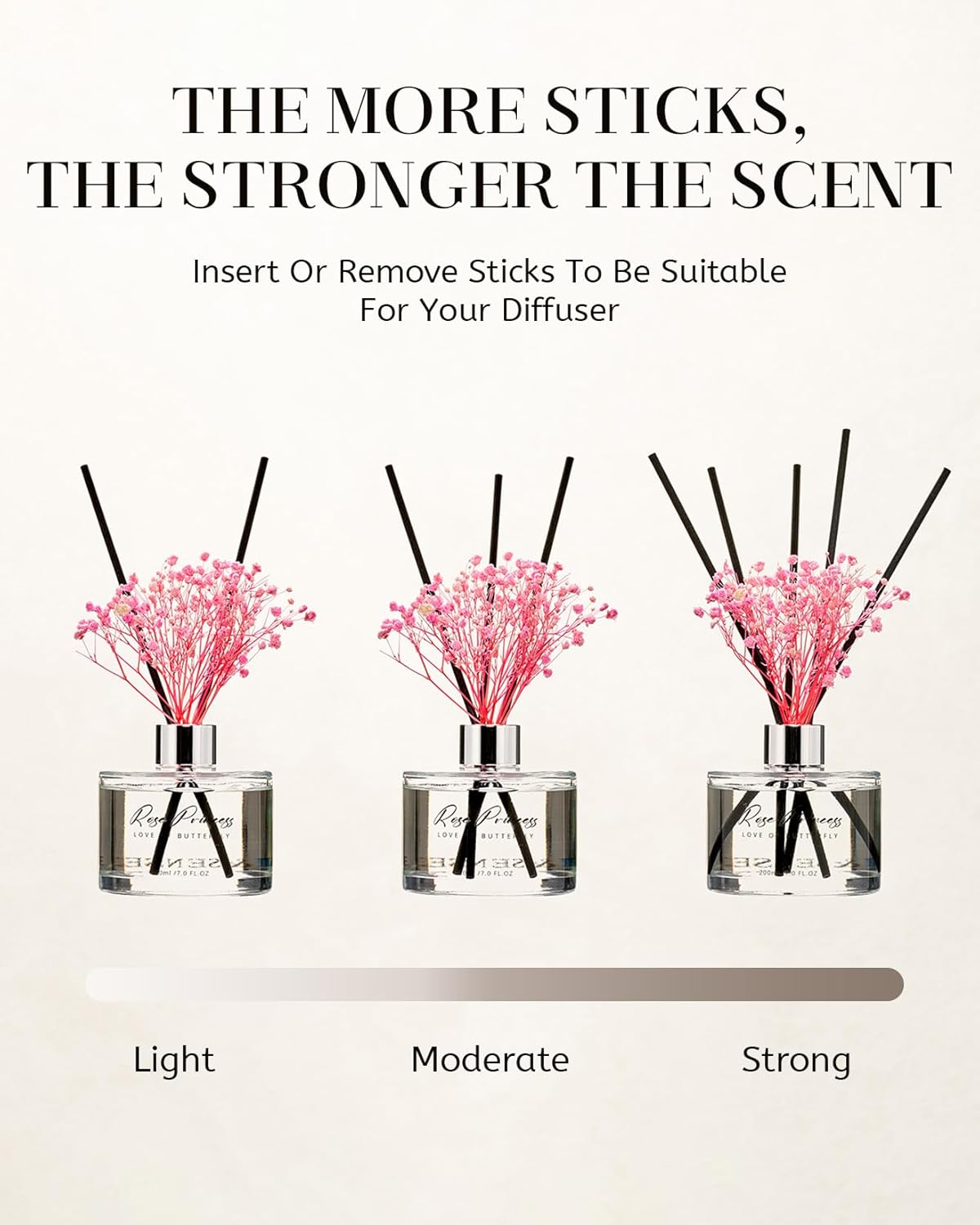 Reed Diffuser Set - This is a comprehensive reed diffuser set. It includes a 7.0oz bottle of essential oil with a stylish container and six sticks and baby's breath flowers. Not only does it effectively diffuse fragrance, but it also serves as an elegant piece of home decor. The set is designed for easy setup and hassle-free use, making it a convenient addition to your home